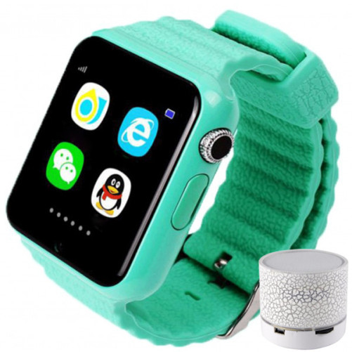 Smartwatch cu GPS Copii si Seniori umeline V8K, Pedometru, Touchscreen 1.54 inch, BT, Notificari, Camera, Verde + Boxa Cadou la umeline.ro