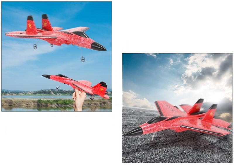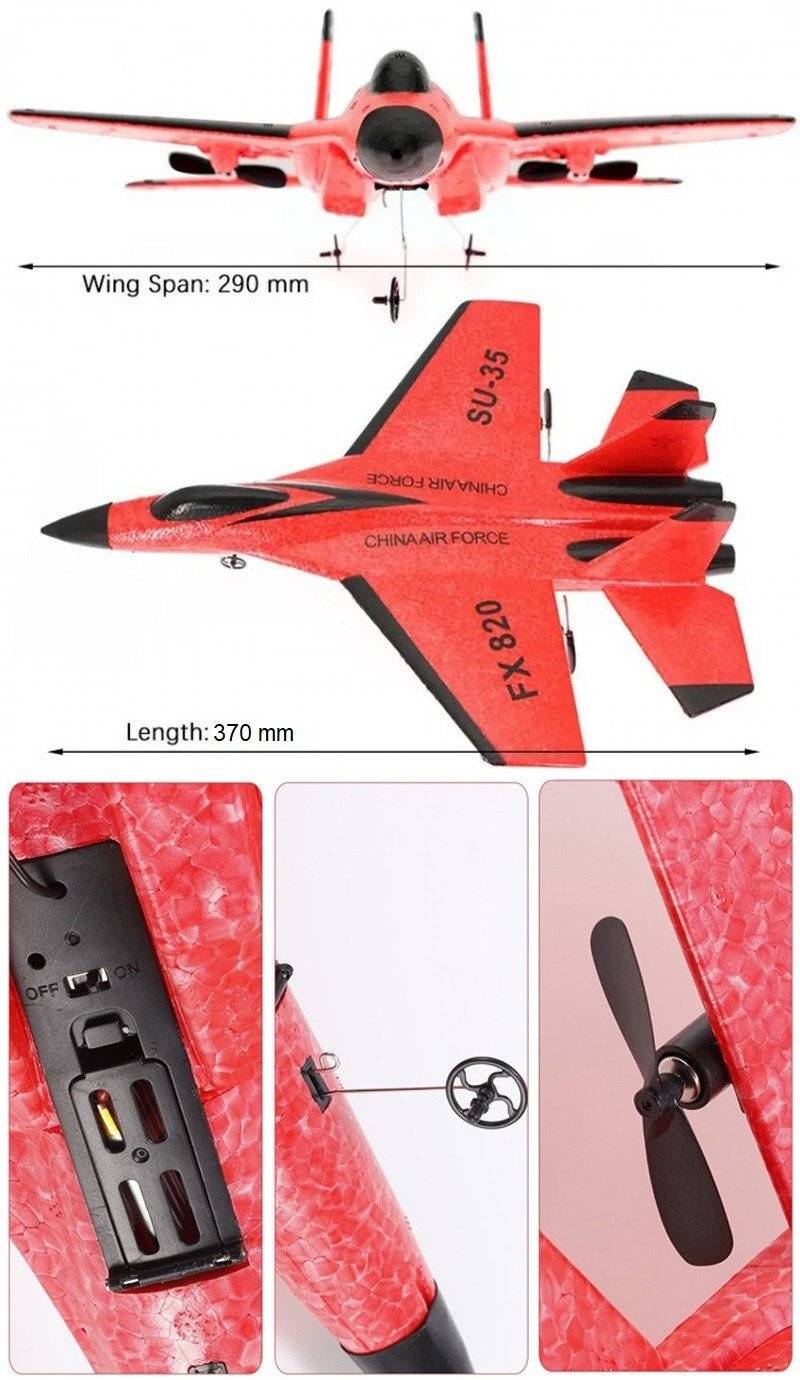 Avion de lupta cu telecomanda umeline FX820, SU-35, Giroscop, Rezistent la impact, Rosu la umeline.ro