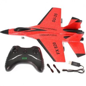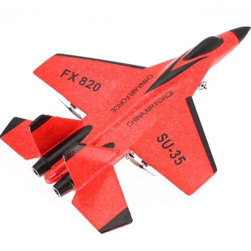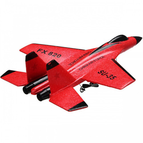 Avion de lupta cu telecomanda umeline FX820, SU-35, Giroscop, Rezistent la impact, Rosu la umeline.ro