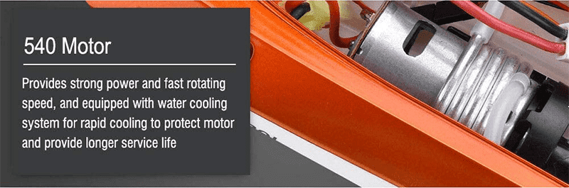 Aceasta barca RC dispune de un motor puternic clasa 540 cu un sistem de racire cu apa, pentru siguranta si functionare fiabila. Sistemul de racire cu circulatie a apei va prelungi durata de viata a motorului, astfel incat acesta sa nu se supraincalzeasca pe masura ce este utilizat.