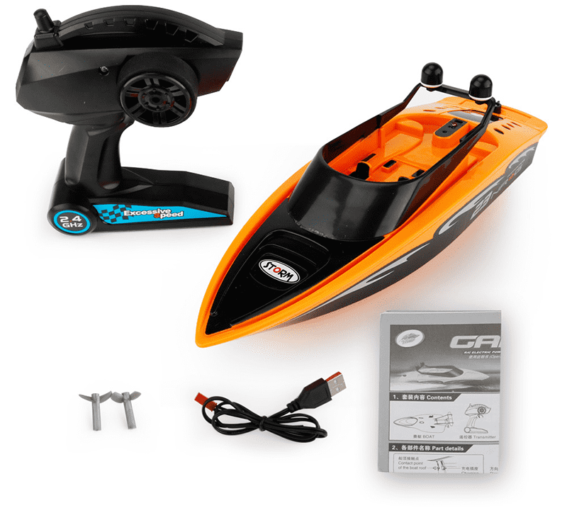 Barca este echipata cu o telecomanda cu 4 canale de 2,4 GHz cu o raza de semnal de aproximativ de 30 de metri. Radiofrecventa permite mai multor jucatori sa-si foloseasca barcile fara teama de a interfera unul cu celalalt.