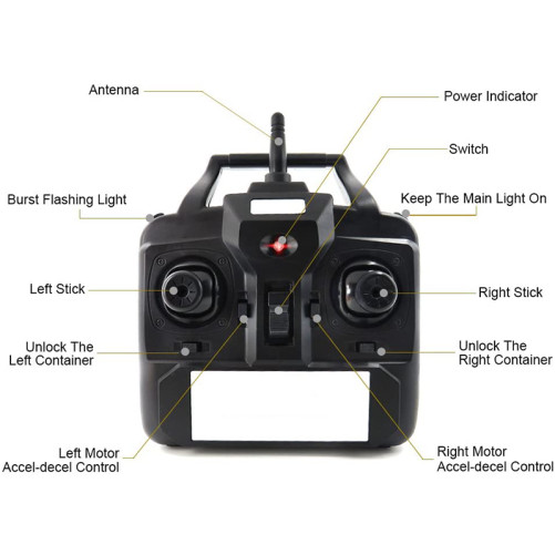 Atentie! Pentru telecomanda foloseste doar baterii alcaline de 1.5V. Pentru performante de lunga durata iti recomandam sa utilizezi baterii de cea mai buna calitate (alegerea unor baterii slabe calitativ pot influenta raza de actiune) – sunt necesare 4 baterii de tip AA(nu sunt incluse in pachet).