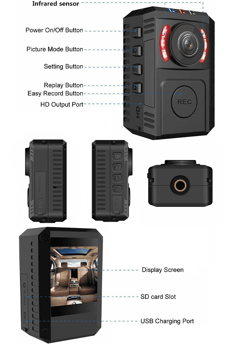 Mini camera video corporala poate fi folosita ca un gadget de securitate sau ca un cadou minunat pentru familia sau prietenii tai. Parintii o pot folosi ca o camera de supraveghere pentru a-i urmari pe copii; femeile il pot folosi ca dispozitiv de autoaparare pentru a evita hartuirea; avocatul sau politia il poate folosi pentru a pastra dovezi importante.
