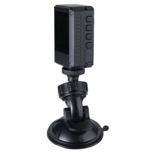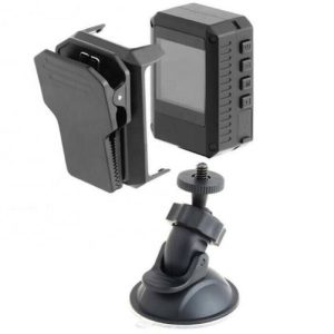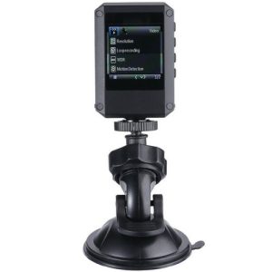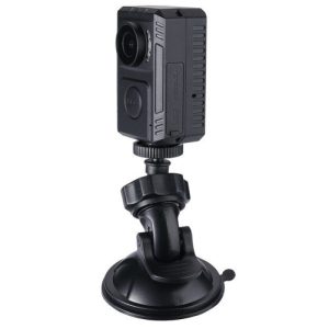 Suportul poate fi atasat pe geamul masinii sau pe bord. De asemenea, este inclus un incarcator auto pentru a se asigura ca aceasta camera de bord ramane mereu pornita.