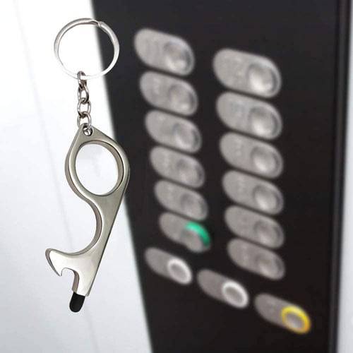 • Acest accesoriu tip breloc te ajuta sa mentii o distanta recomandata de 7 cm fata de suprafetele cu risc ridicat de contaminare, precum: intrerupatoare, butonul de la lift, bancomate, manere usi, etc.