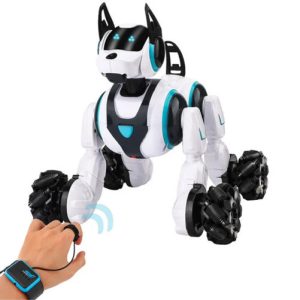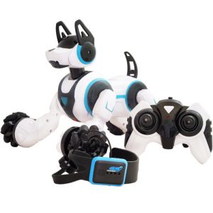 Cu sistem dublu de control, prin ceas sau telecomanda, acest caine robot inteligent ofera copiilor minute bune de divertisment. Aluneca cu usurinta inainte / inapoi, si este capabil sa faca intoarceri stanga / dreapta fara nicio problema. Pe langa asta cainele robot se si roteste la 360 de grade spre bucuria celor mici.