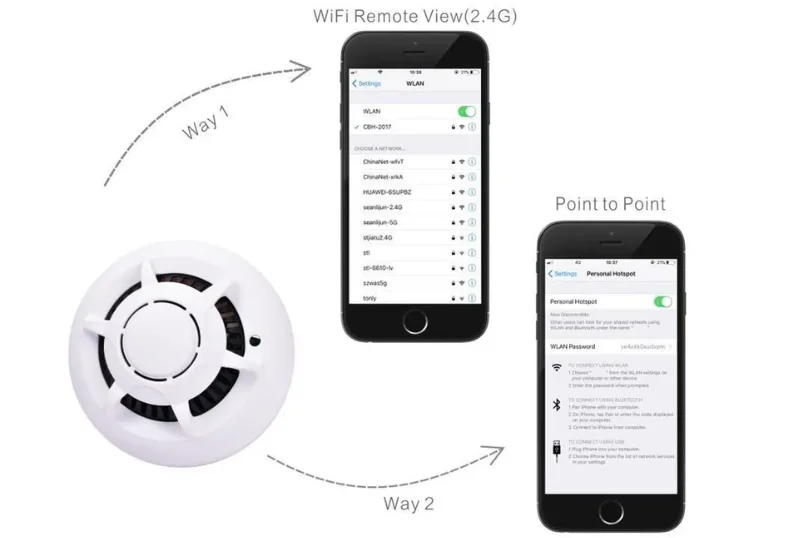 Camera spion cu tehnologie P2P iti permite sa vizualizezi ce se filmeaza direct de pe telefon sau tableta, daca te afli la o distanta de 5-10 de metri de microcamera. Sau daca in respectiva locatie exista internet wireless poti conecta minicamera direct la router si va rezulta o camera video IP wireless mascata ce va permite monitorizarea de oriunde din lume.