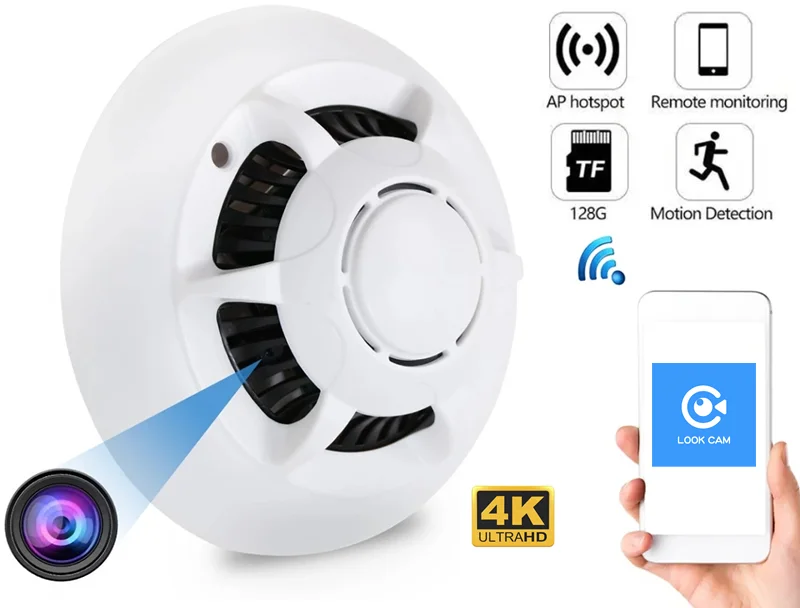 Κάμερα Spion Detector de fum umeline D103, Wi-Fi, Προβολή 4K, Ανίχνευση κακοποίησης