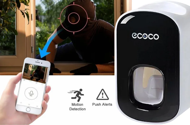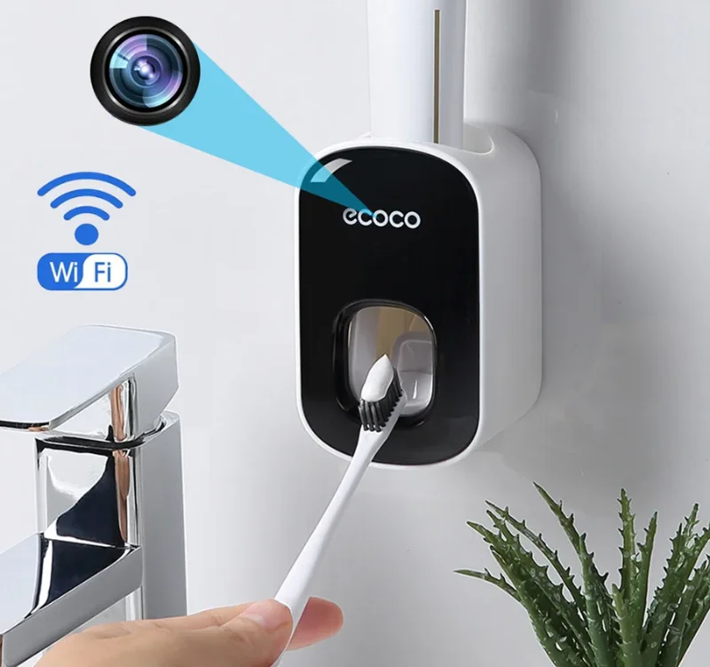 La prima vedere, dispenserul de pasta de dinti pare a fi doar un obiect obisnuit de baie, conceput pentru a elibera cantitatea perfecta de pasta de dinti cu fiecare apasare. Totusi,  in interiorul sau se afla o mica camera spion, aproape invizibila…
