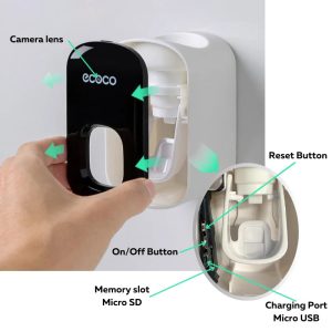 La prima vedere, dispenserul de pasta de dinti pare a fi doar un obiect obisnuit de baie, conceput pentru a elibera cantitatea perfecta de pasta de dinti cu fiecare apasare. Totusi, in interiorul sau se afla o mica camera spion, aproape invizibila ochiului uman. Aceasta camera video este amplasata strategic intr-un punct neobservat, permitandu-i sa capteze imagini sau sa inregistreze video in secret.