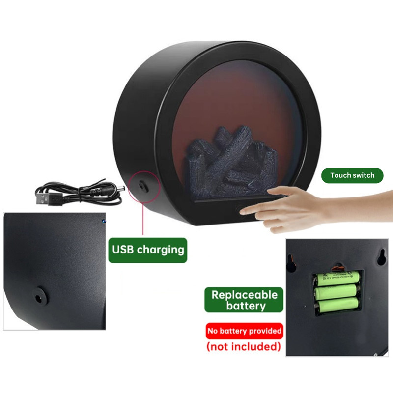 Acest mini semineu electric dispune de doua moduri de alimentare pentru a se potrivi nevoilor tale: poti conecta cablul USB inclus in pachet la o sursa de curent sau poti folosi trei baterii de tip AA(nu sunt incluse) pentru a-l face complet portabil.