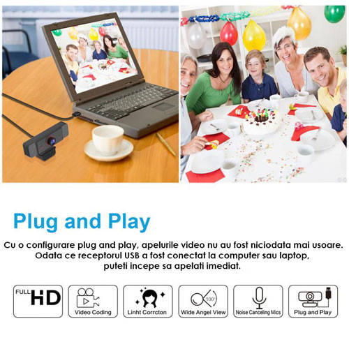 Usor de utilizat: Cu o configurare plug and play, apelurile video nu au fost niciodata mai usoare. Odata ce receptorul USB a fost conectat la computer sau laptop, puteti incepe sa apelati imediat.