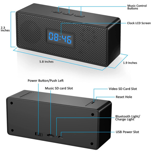 Acest dispozitiv este combinatia perfecta de camera spion cu boxa bluetooth si ceas cu alarma. Deoarece camera are mai multe scopuri, este foarte putin probabil ca cineva sa observe acest dispozitiv ca fiind o camera ascunsa.