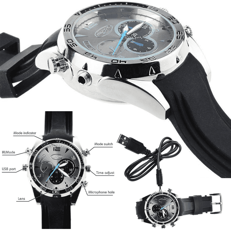 Design elegant si discret – aceasta camera arata exact ca un ceas pentru barbati; este aproape imposibil sa detectezi cu ochiul liber obiectivul camerei spion din cadranul ceasului, iar portul de conectare USB este proiectat sa arate ca un alt buton, asa ca nimeni nu va banui ca este un dispozitiv de supraveghere.