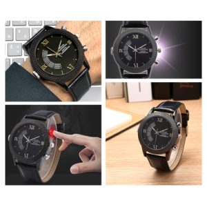 Design elegant si discret – aceasta camera arata exact ca un ceas pentru barbati; este aproape imposibil sa detectezi cu ochiul liber obiectivul camerei spion din cadranul ceasului, iar portul de conectare USB este proiectat sa arate ca un alt buton, asa ca nimeni nu va banui ca este un dispozitiv de supraveghere.