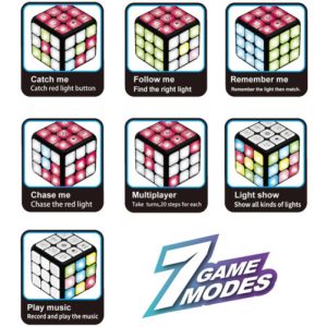 Exista 7 moduri de joc, pline de distractie din care puteti alege: Catch Me, Follow Me, Remember Me, Chase Me, Multiplayer, Light Show, Play Music.