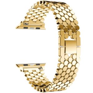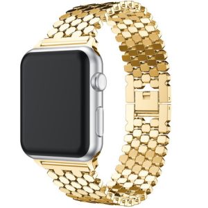 Aceasta bratara de culoare Gold (nuanta, tonul si intensitatea culorii pot varia in functie de monitor) este special conceputa pentru utilizatorii de Apple Watch 1/2/3/4/5/SE/6/7 cu dimensiunea de 38 mm.