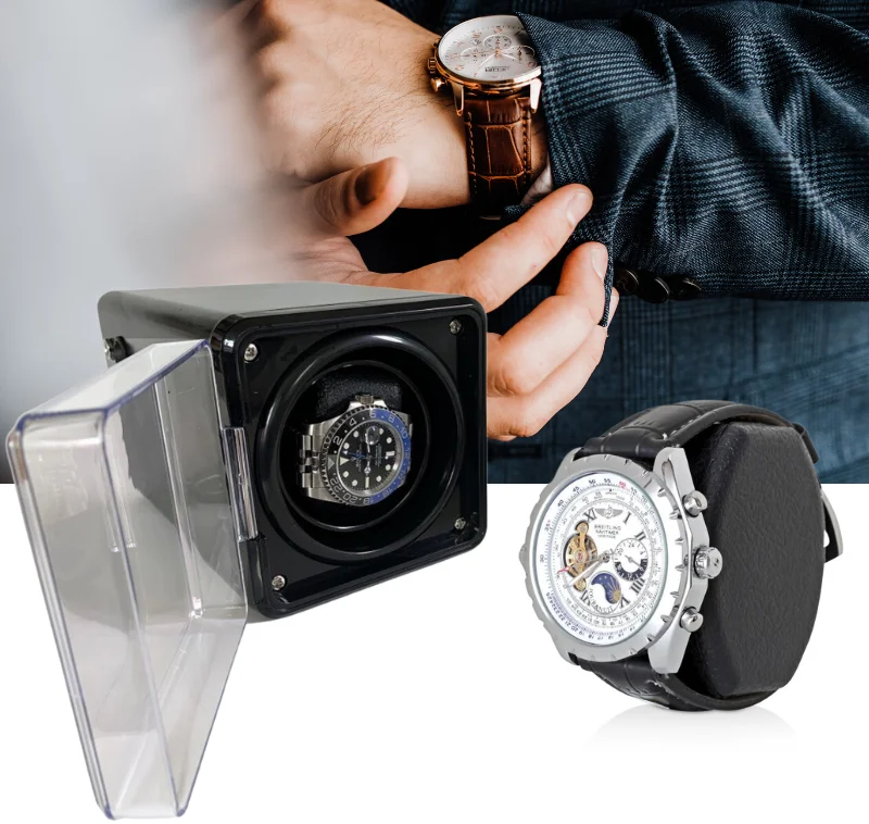 Un watch winder este un dispozitiv cu un motor electric care ajuta la prelungirea duratei de viata a ceasurilor automate folosind o tehnologie speciala. Principalul avantaj al acestui accesoriu este ca iti va pastra ceasurile perfect pregatite pentru a fi purtate ori de cate ori iti doresti. De asemenea, va mentine functia de zi / data corect, astfel incat nu va fi nevoie sa resetezi ceasurile atunci cand decizi sa le porti.