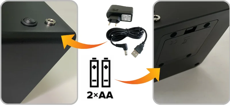 • Slot baterii: 2*baterii tip AA alkaline(nu sunt incluse)