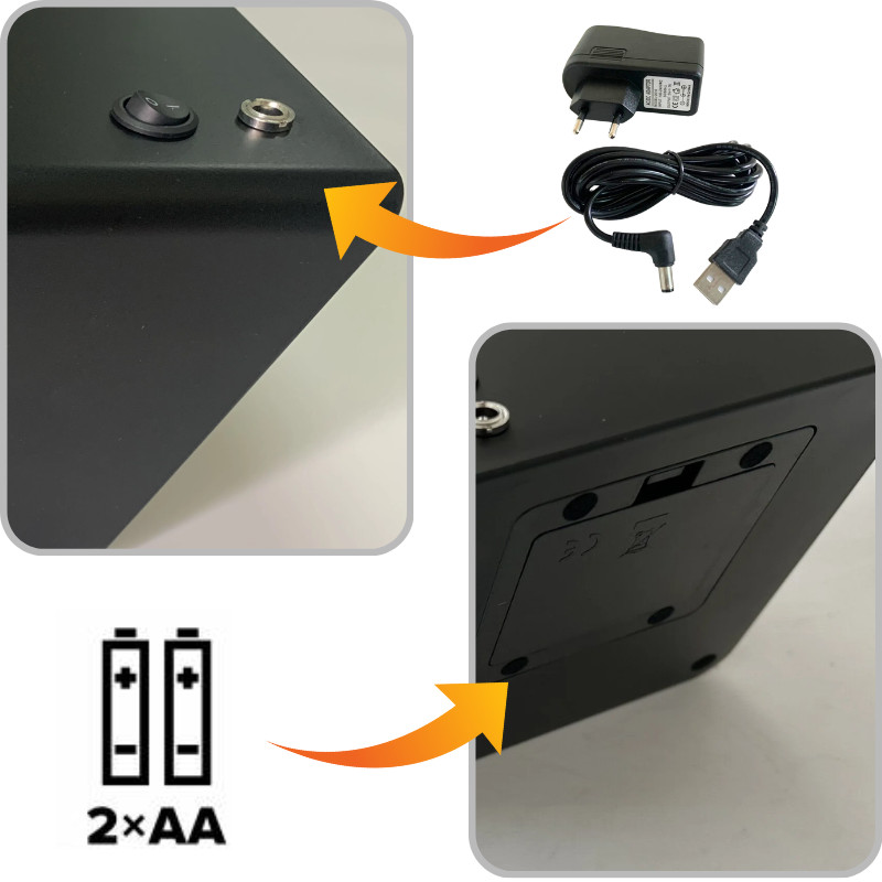 • Slot baterii: 2*baterii tip AA alkaline(nu sunt incluse)