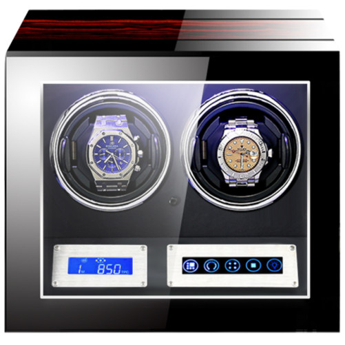 Watch Winder-ul functioneaza cu cinci programe de rotatie, care pot fi selectate de pe ecranul LCD cu touch screen din interior sau prin telecomanda: