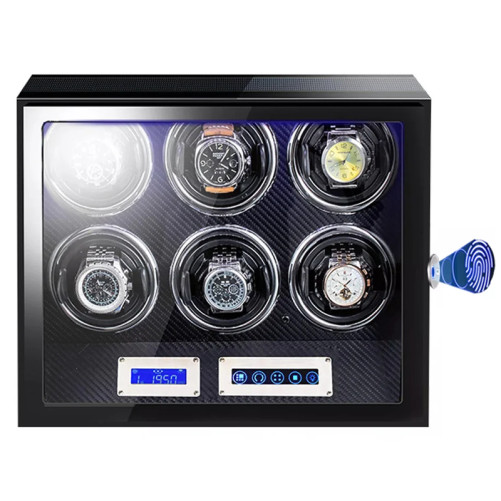 Cumpara cutie intors ceasuri automatice cu amprenta umeline, Luxury Watch Winder 6 Carbon de pe umeline.ro