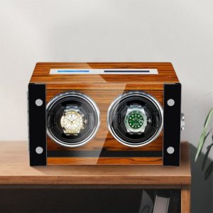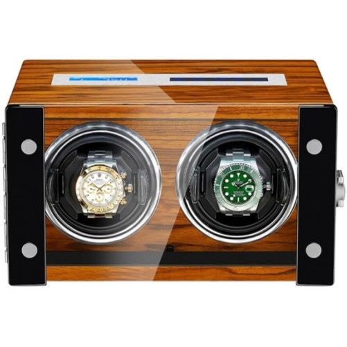 Acest watch winder este un cadou practic si cu stil destinat colectionarilor de ceasuri automatice. Cutia este realizata din lemn de pin de inalta calitate si este prevazuta cu un geam exterior cu dublu rol, acela de a proteja ceasurile aflate pe rotoare, dar si de a-i permite destinatarului sa-si admire ceasurile pe cele doua rotoare.