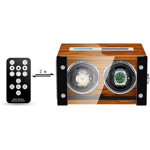 Cu ajutorul telecomenzii incluse poti controla lumina interioara si poti regla orice setare a cutiei de intors ceasuri de la distanta(maxim 2 metri).