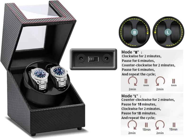 Watch Winder-ul functioneaza cu doua programe de rotatie: