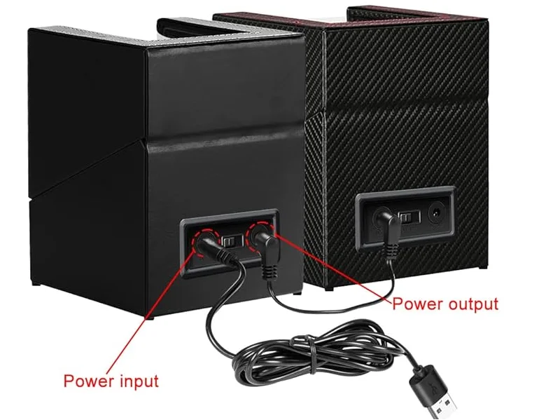 Acest watch winder este alimentat prin intermediul unui cablu USB, oferindu-ti flexibilitate si comoditate in utilizare.