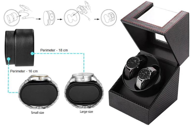 Cutia de intors ceasuri automatice contine un suport reglabil, fiind potrivit pentru ceasuri de diferite dimensumeline.