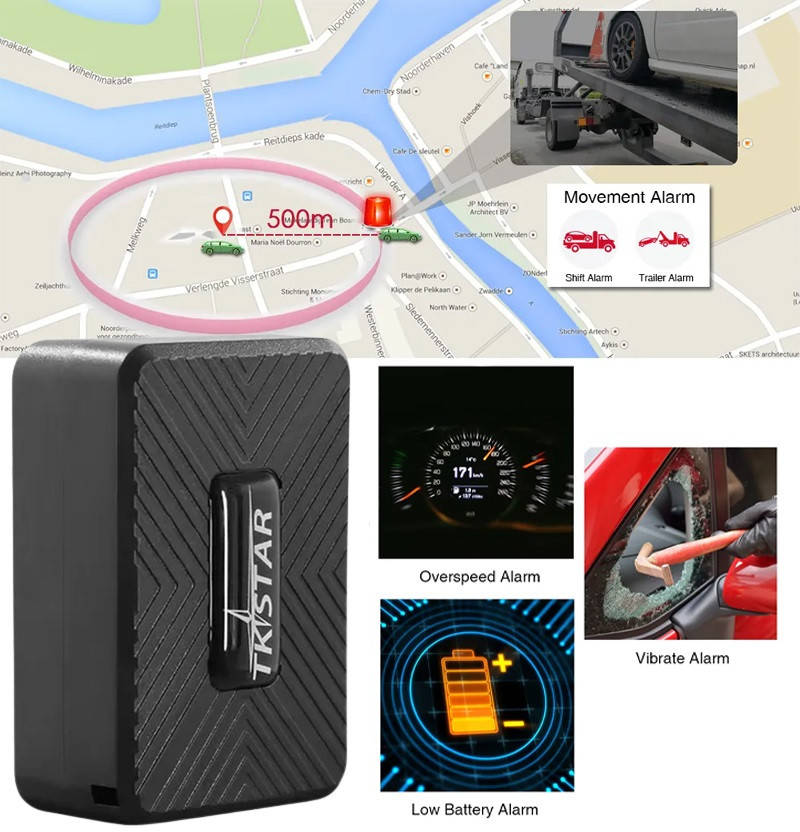 Alarma miscare – daca GPS tracker-ul este miscat sau mutat, se trimite un SMS de avertizare, astfel vei putea preveni un posibil furt.