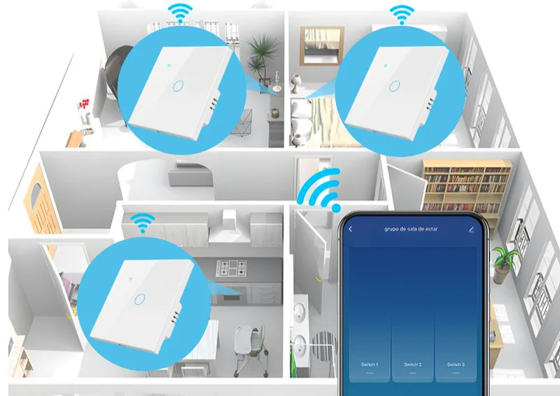 Prin conectarea la reteaua Wi-Fi a casei tale, intrerupatorul inteligent devine accesibil de pe orice dispozitiv inteligent, fie ca vorbim despre smartphone-uri, tablete sau chiar de la distanta, prin intermediul internetului.