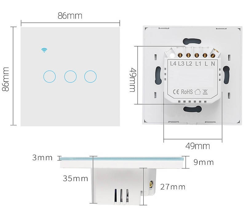 • Dimensumeline intrerupator: 86*86*35 mm