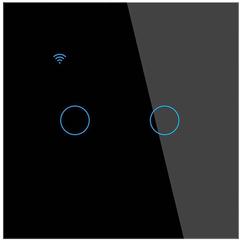 Intrerupator smart touch umeline 2F, Wi-Fi, Sticla securizata, LED, Black la umeline.ro