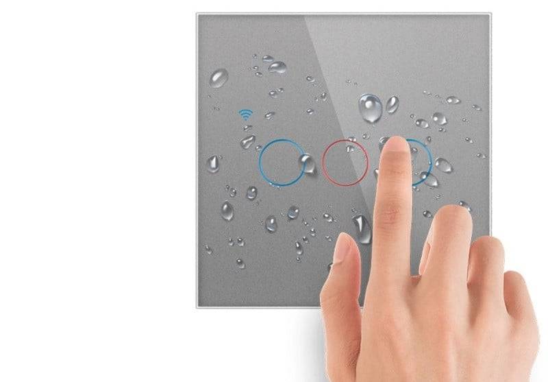 Intrerupatorul inteligent cu touch poate fi actionat cu un singur gest peste panoul din sticla, chiar si atunci cand ai mana uda, pericolul de electrocutare fiind inexistent. Este conceput pentru a rezista in medii umede, cum ar fi baile sau bucatariile. Astfel, poti fi sigur ca functionarea sa nu va fi afectata de umiditate sau stropi de apa.
