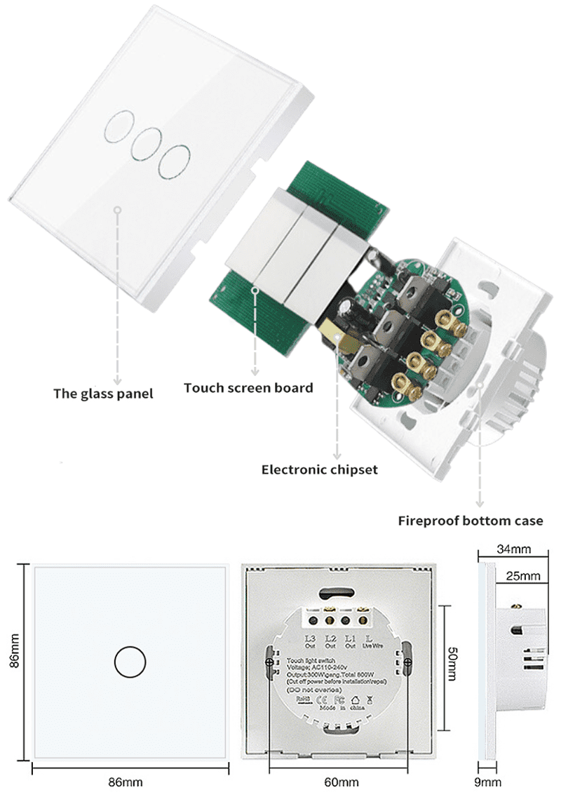 Acest intrerupator cu touch din sticla poate fi utilizat pentru a aprinde sau stinge spoturi LED, becuri LED, becuri economice, becuri incandescente sau alte tipuri de becuri.