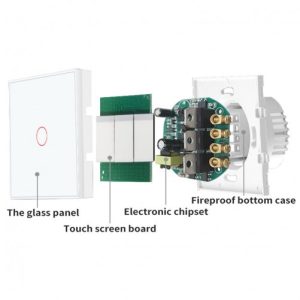 Intrerupatorul cu touch poate fi actionat cu un singur gest peste panoul din sticla, chiar si atunci cand aveti mana uda, pericolul de electrocutare fiind inexistent. Este conceput pentru a rezista in medii umede, cum ar fi baile sau bucatariile. Astfel, poti fi sigur ca functionarea sa nu va fi afectata de umiditate sau stropi de apa accidental.