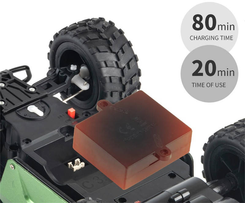 Tractiunea 4×4 si suspensiile de pe toate cele patru roti ajuta la depasirea tuturor obstacolelor. Bateria reincarcabila ofera, de asemenea, timp de redare lung, de pana la 20 de minute.