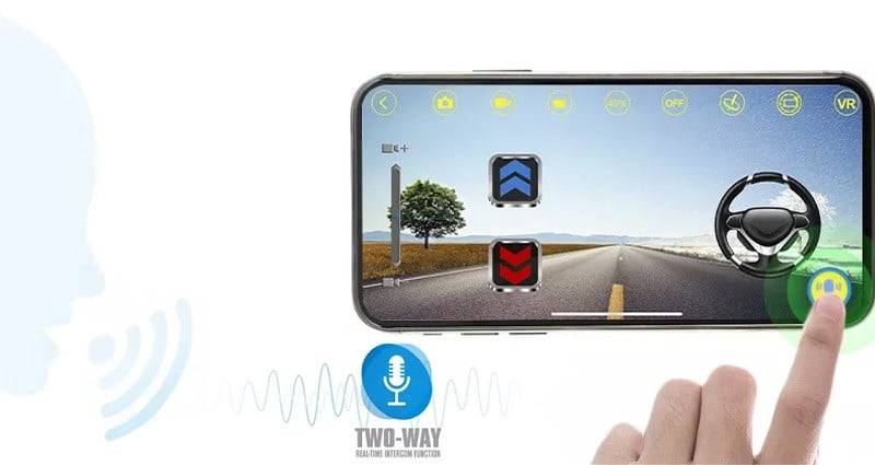 Aplicatia pentru telefon beneficiaza si de modul de vizualizare a imaginii in 3D. Odata conectata aplicatia la masinuta si activat modul VR, puteti introduce telefonul in ochelari speciali VR 3D(nu sunt inclusi in pachet) si va puteti bucura de exprienta VR 3D a imaginilor redate de camera masinii.