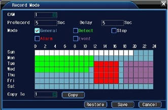 Exista mai multe moduri pentru a seta inregistrarea, cum ar fi in functie de un program bine stabilit, detectarea miscarii sau manual, alegand doar optumelinele care va intereseaza. Prin “Motion Detection” sau modul pentru detectare a miscarii, NVR-ul poate fi programat astfel incat sa poata detecta orice fel de miscare efectuata in aria monitorizata si sa declanseze in mod automat inregistrarea. Iar prin setarea manuala, poti configura setarile in functie de anumite zile si ore intre care doresti ca aparatul sa inregistreze.