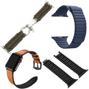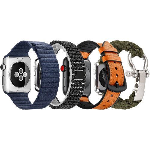 Set 4 Curele umeline compatibile cu Apple Watch 1/2/3/4/5/6/7, 44mm, Bleumarin, Negru, Maro, Verde la umeline.ro