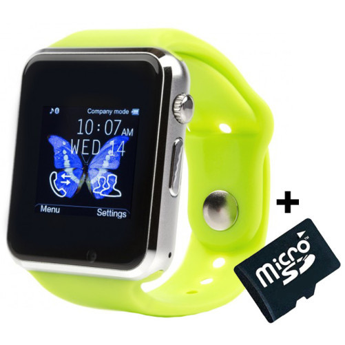 Ceas Smartwatch cu Telefon umeline A100i, BT, LCD 1.54 Inch, Camera, Verde + Card MicroSD 4GB Cadou la umeline.ro