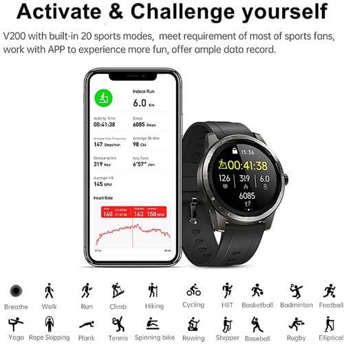 Monitorizarea sedentarismului: daca suneti o persoana in general sedentara, lucratul la un birou poate avea urmari destul de grave asupra sanatatii fizice. Din acest motiv, cu functia de monitorizare a sedentarismului, utilizatorul va fi notificat fie printr-o vibratie, fie print-un sunet ca este timpul sa faceti miscare. Nu uitati de asemenea ca trebuie sa va hidratati cu lichide. Smartwatch-ul V200 va avea grija ca acest lucru sa se intample constant.