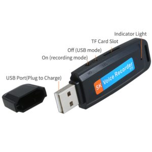 Functioneaza cu un card de memorie extern de pana la 32 GB si foloseste o baterie Li-ion cu o capacitate de 100mAh. Bateria ii permite sa inregistre pana la 12 ore cand este complet incarcata. Indicatorul de lumina rosie va incepe sa clipeasca cand bateria este descarcata. Il puteti conecta la un computer sau la orice dispozitiv de incarcare USB.