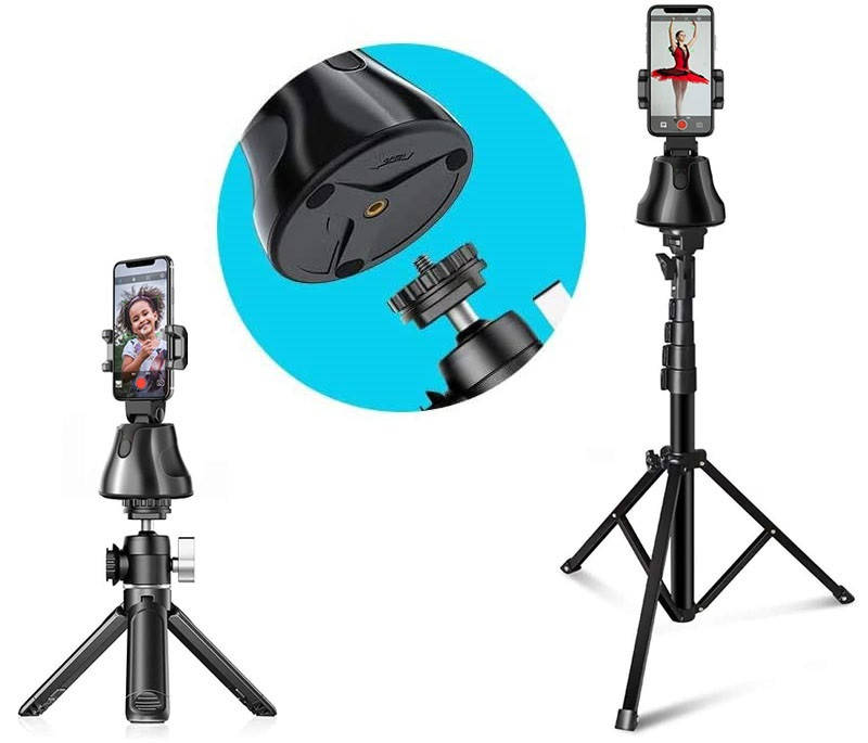 Suportul pentru telefon cu functia de urmarire a fetei introduce tehnologia AI de compozitie a imaginii umane si recunoaste automat persoana ori animalutele de companie, se roteste la 360 de garde urmarind miscarile obiectului de fotografiat/ filmat si fotografiaza focalizand si obtinand imagini ideale.