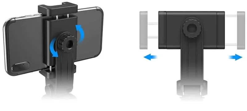 Suportul este dotat cu o clema ajustabila pentru telefoane cu o latime intre 5.5 si 12cm, care se poate extinde sau contracta pentru a se potrivi perfect dimensumelinelor telefonului. Aceasta clema este prevazuta cu un strat de cauciuc moale care protejeaza telefonul impotriva zgarieturilor si a altor daune.