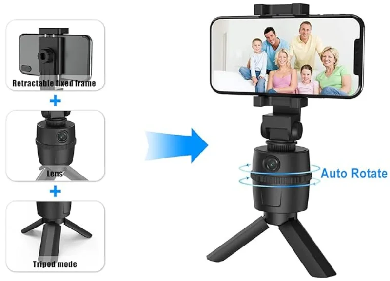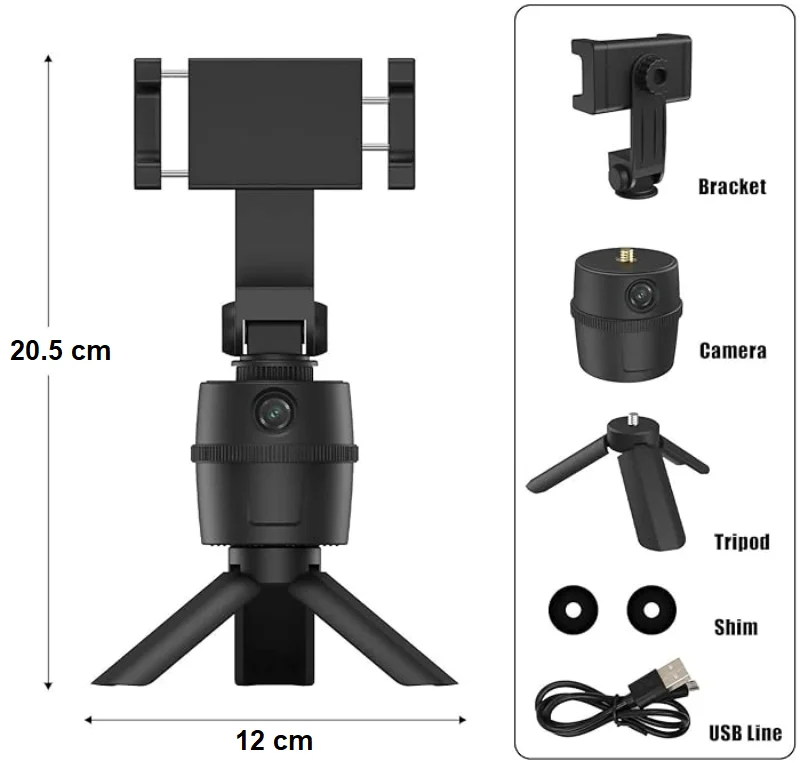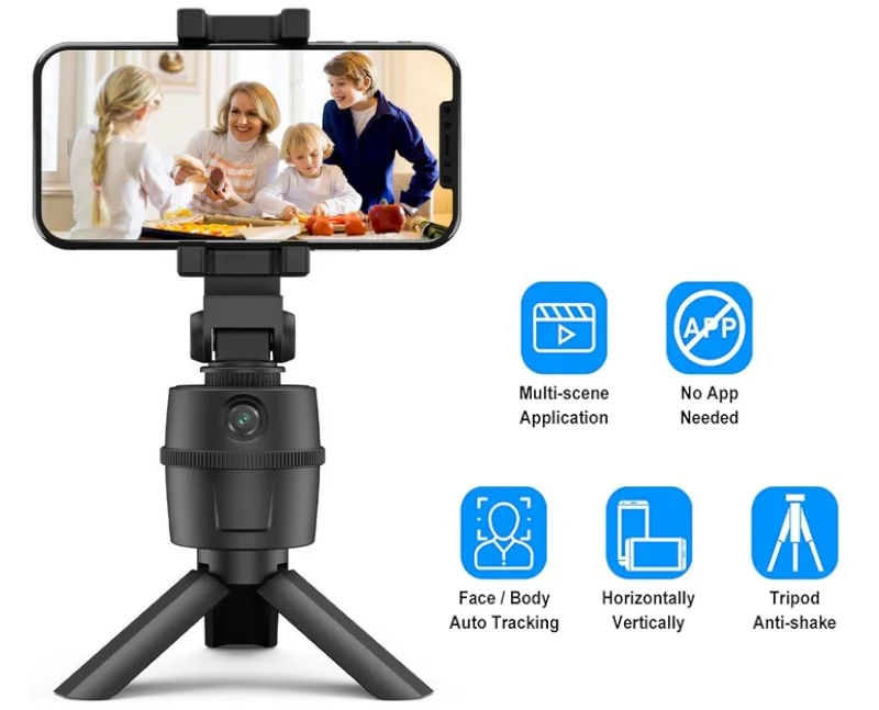 Suportul pentru telefon cu functia de urmarire a fetei introduce tehnologia AI de compozitie a imaginii umane si recunoaste automat persoana ori animalutele de companie, se roteste la 270 de garde urmarind miscarile obiectului de fotografiat/ filmat si fotografiaza focalizand si obtinand imagini ideale.