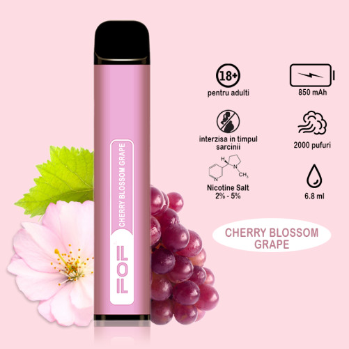 Tigara electronica, narghilea, 2000 pufuri, umeline FOF KT-1, 6.8 ml, 2% Nicotina, Cherry Blossom Grape la umeline.ro