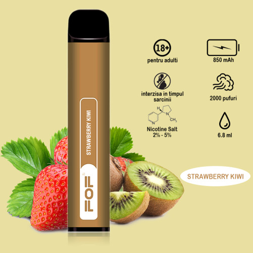Tigara electronica, narghilea, 2000 pufuri, umeline FOF KT-1, 6.8 ml, 2% Nicotina, Strawberry Kiwi la umeline.ro